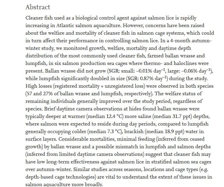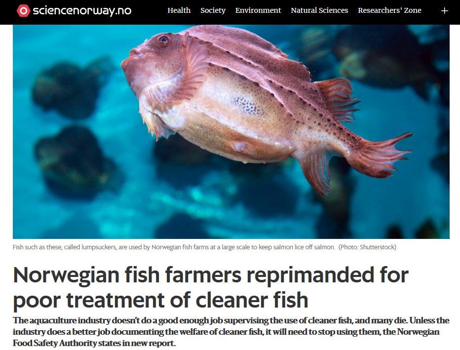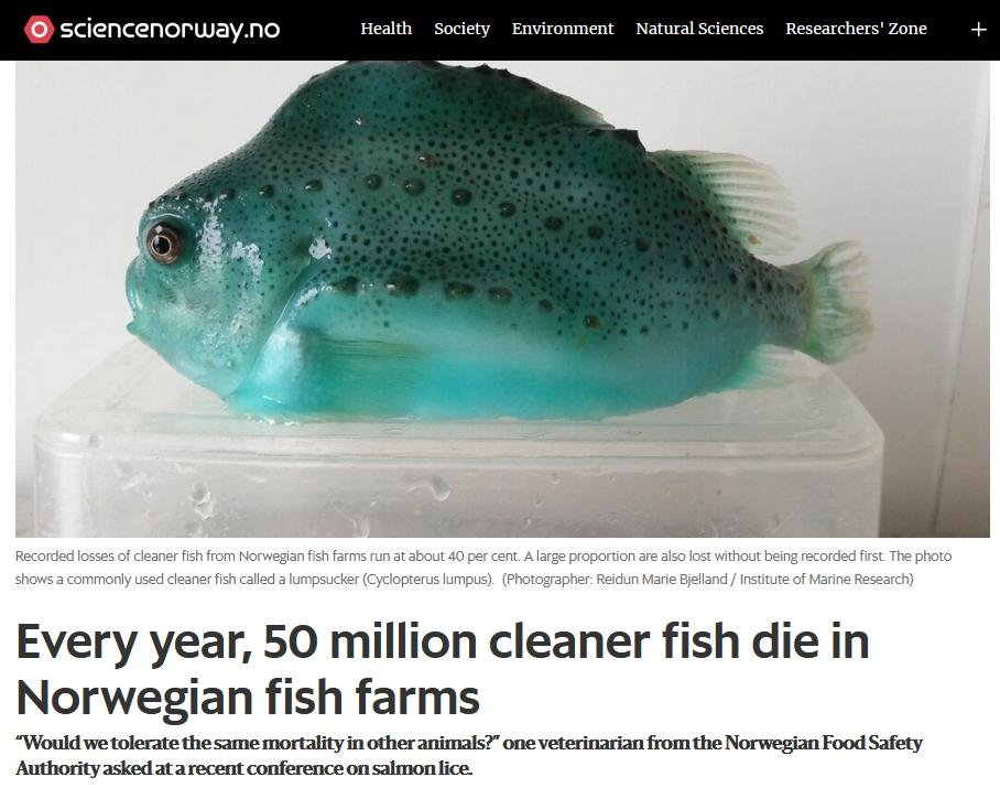 Every year 50 million cleaner fish die on Norwegian fish farms @Sciencenorwayno @InfoMattilsynet https://t.co/3W3WsbzSiI