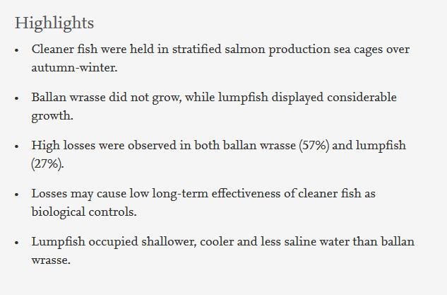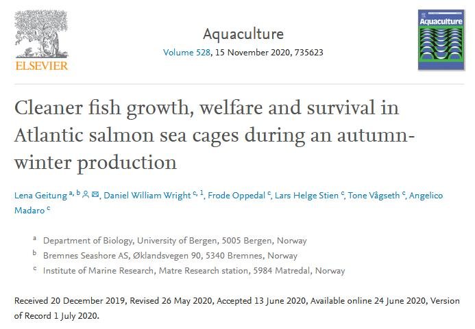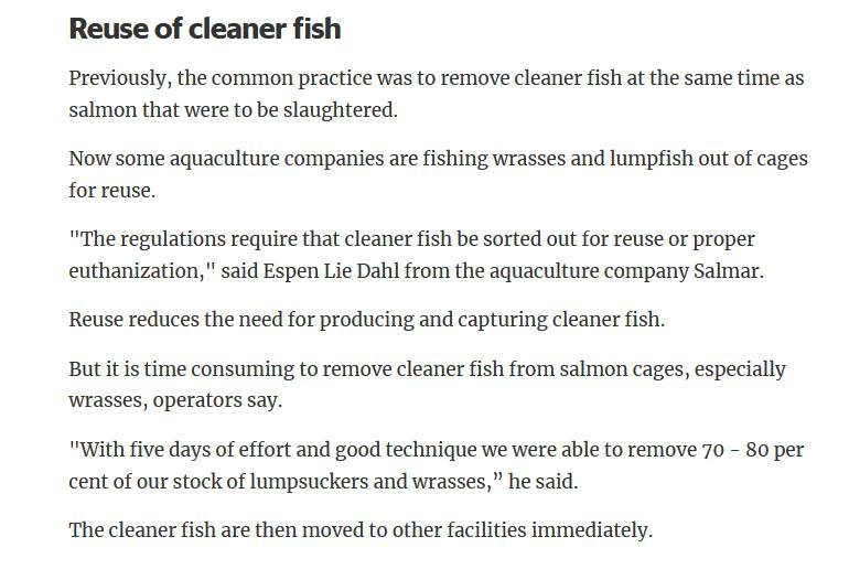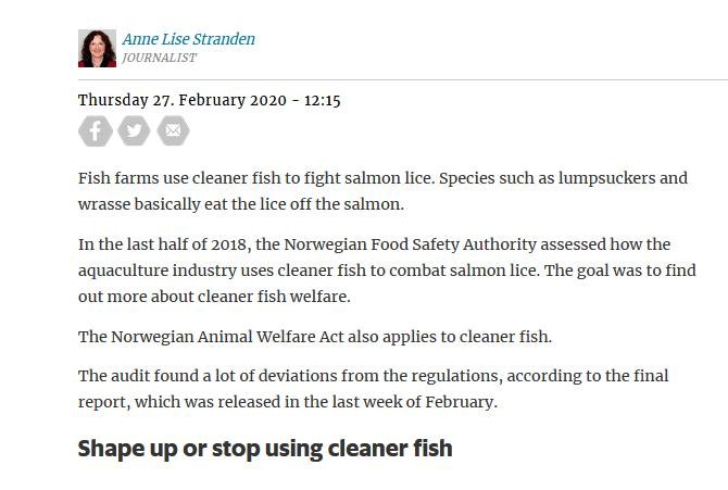 Here's another report on cleaner fish (in Norwegian) published on 20 February 2020: