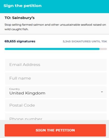 70,000 people have signed a petition organised by SumOfUs against Scottish salmon sold by Sainsbury's!