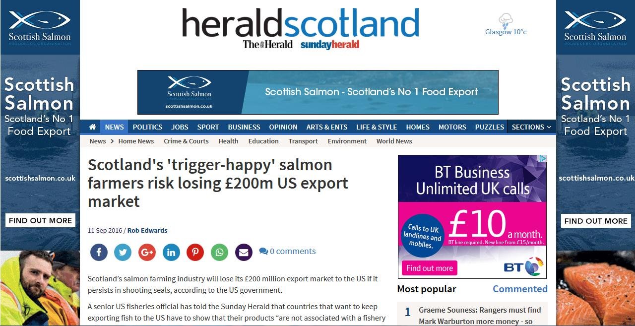 "Sunday Herald: "Scotland's 'trigger-happy' salmon farmers risk losing £200m US export market""
