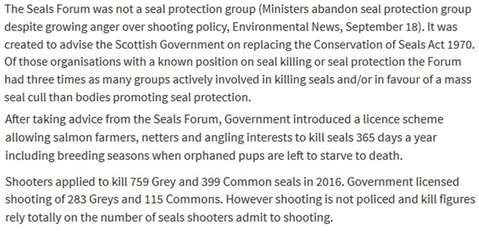 Suffice to say that both the Scottish Government (which sanctions the killing of seals in Scotland by issuing licences) and the Scottish salmon farming industry (which has killed over 750 seals since 2011) should read the U.S. Federal Register's Fish and Fish Product Import Provisions of the Marine Mammal Protection Act published on 16 August 2016; namely:
