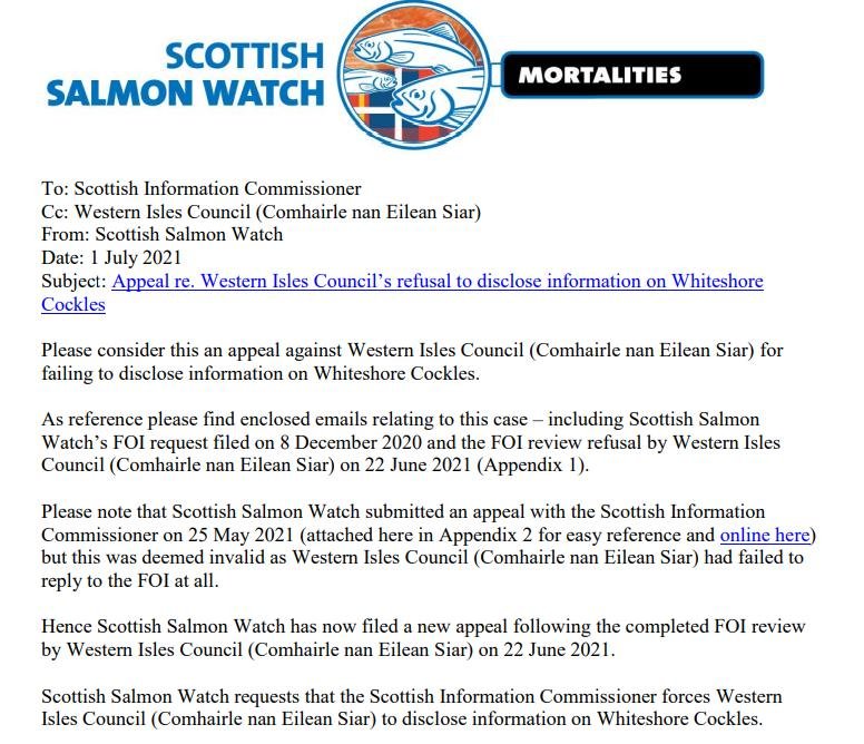 Subject: Appeal re. Comhairle nan Eilean Siar's refusal to provide information on Whiteshore Cockles