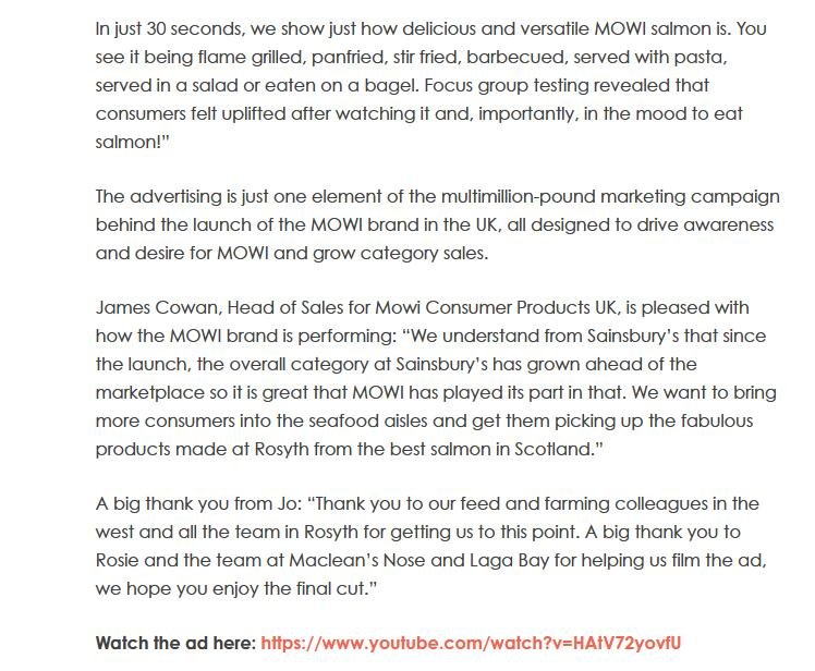 Mowi's MacLean's Nose salmon farm – where the advertising agency filmed for the advert – showcases the toxic nature of salmon farming.   Scamon Scotland reported earlier this month (3 February 2022):