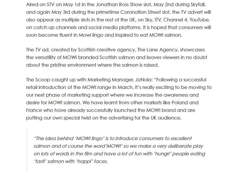 You may have seen Mowi's TV adverts screened on primetime in the UK and in the United States using the taglines 'Tasti', 'Yummi' and 'Healthi':