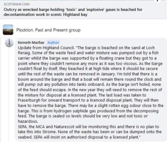 Police Scotland FOI disclosure on toxic feed barge off Portree – now beached in Kishorn?