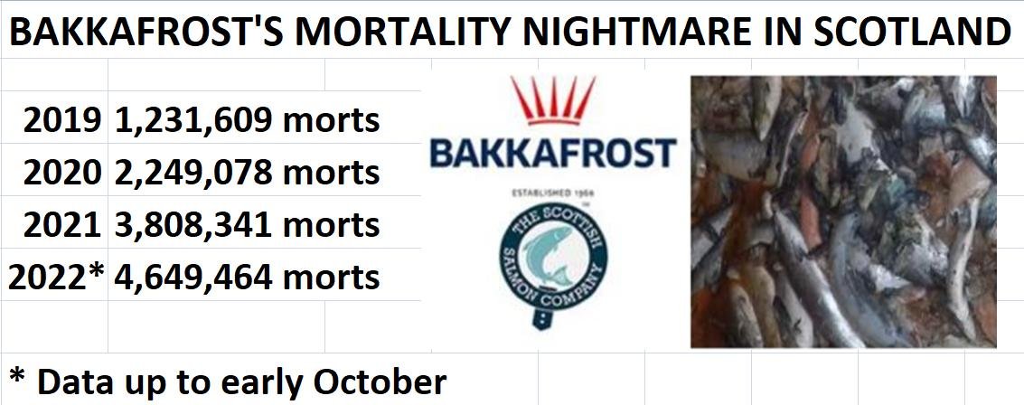 In other words, it's shaping up for one mort per pound invested in Bakkafrost Scotland/The Scottish Salmon Company by Highlands & Islands Enterprise and Marine Scotland (who invested £5 million of public money in December 2021)!