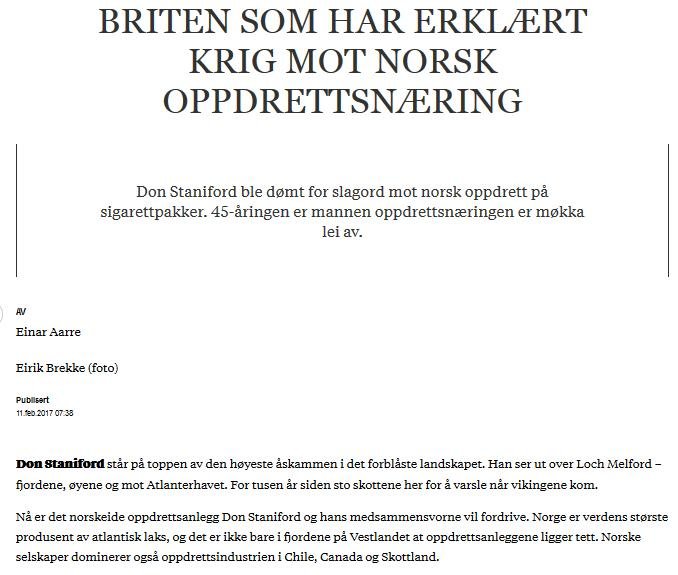 Bergens Tidende featured GAAIA's 'Salmon Farming Kills' campaign in a magazine feature article today (11 February 2017) – read online here