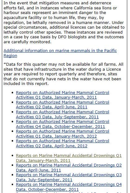 The Canadian Government publish damning data on the killings of marine mammals on salmon farms in British Columbia – with "authorized" and "accidental" deaths reported each quarter.
