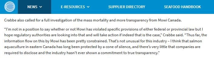 Seafood Source reported just yesterday (11 November 2019) that the Atlantic Salmon Federation had criticised Mowi's cover-up.