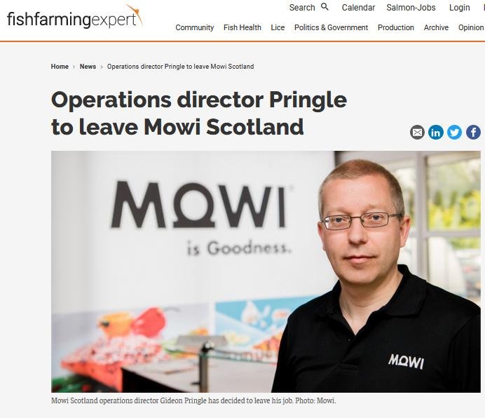 The boss of beleaguered salmon farming giant Mowi has seemingly paid the ultimate price for mass mortalities and infectious diseases crippling feedlots operated by the world's #1 company all over the globe. Fish Farmer reported (12 November 2019):