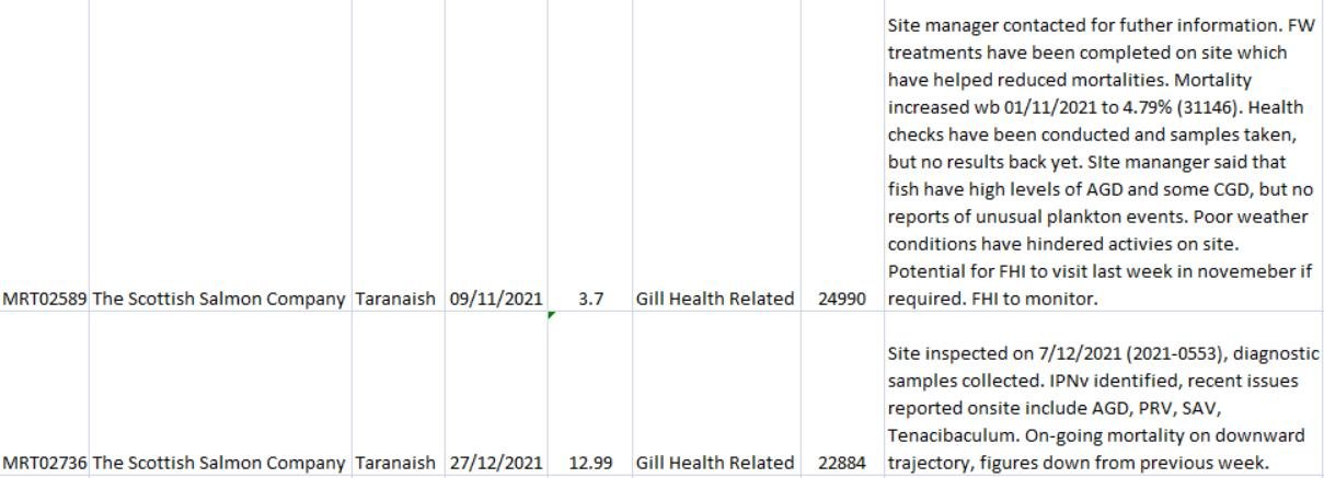 Here's the Excel spreadsheet for mortality of cleaner fish at Taranaish salmon farm in 2021 (download online here):