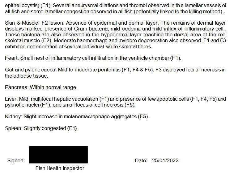 Here's the Fish Health Inspectorate's report on Taranaish salmon farm detailing the inspection on 7 December 2021 (Additional case 20210553) – including over 7,000 ballan wrasse mortalities and 100% mortality (i.e. all the wrasse died) by Week 45 (sadly there are no photos of the dead ballan wrasse):