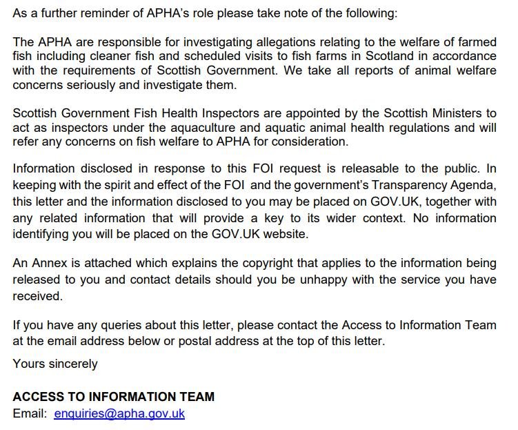 APHA replied in an email to The Scottish Salmon Company on 13 December 2021: