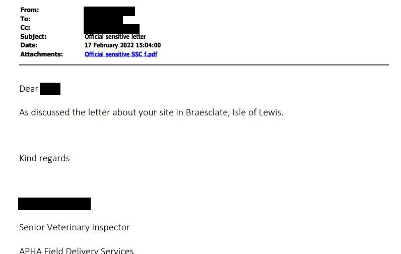 Cc: <scottish.ministers@gov.scot>, SM-APHA-Enquiries APHA <enquiries@apha.gov.uk>, <APHA.Scotland@apha.gsi.gov.uk>, APHA Corporate Correspondence <apha.corporatecorrespondence@apha.gsi.gov.uk>