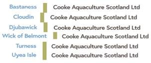 Six of Cooke's Shetland salmon farms featured amongst the sixty "liciest" salmon farms with Bastaness, Cloudin, Turness, Vee Taing, Wick of Belmont and Djubawick named and shamed in November 2017 by Salmon & Trout Conservation as breaching sea lice trigger levels between November 2016 and August 2017.
