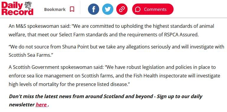 The Times: "RSPCA investigates Scottish salmon supplier to M&S over lice accusations"