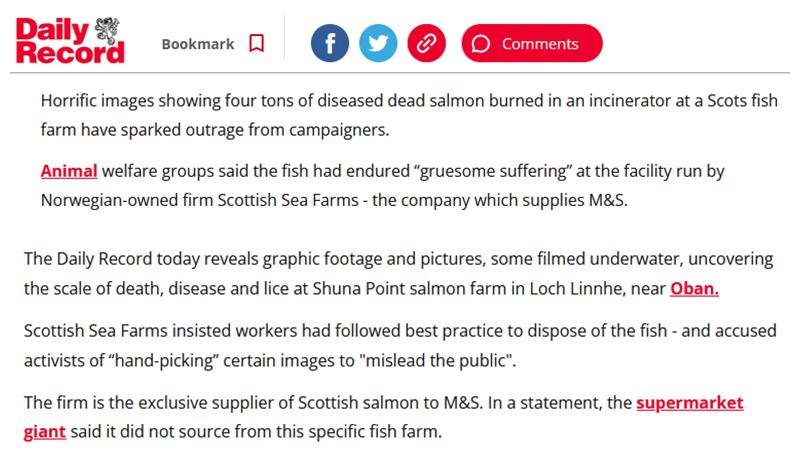 Today's Daily Record: "Horrific images showing four tons of diseased dead salmon burned in an incinerator at a Scots fish farm have sparked outrage from campaigners" @Daily_Record @rspcaassured @ChrisGPackham @marksandspencer @scotseafarms @ciwf @scotgp https://t.co/HkrEYBgahi
