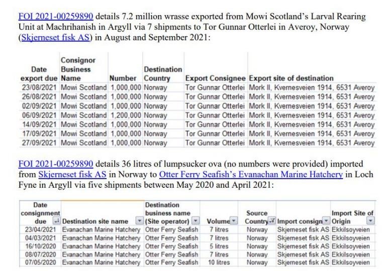 Last week (14 January 2022), Scottish Salmon Watch revealed that 7.2 million ova from Mowi's Larval Rearing Unit at Macrihanish were exported in August and September 2022 to Norway (as well as lumpfish imported to Scotland from Norway):