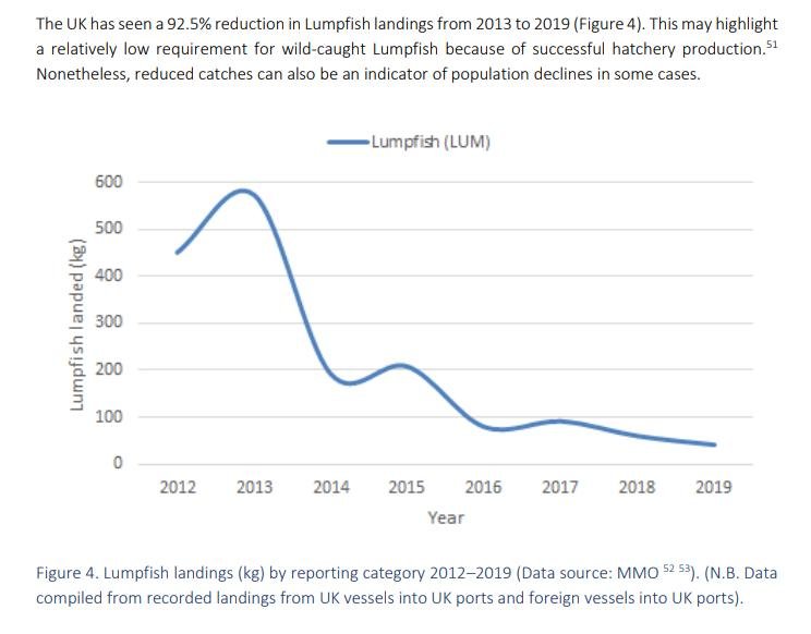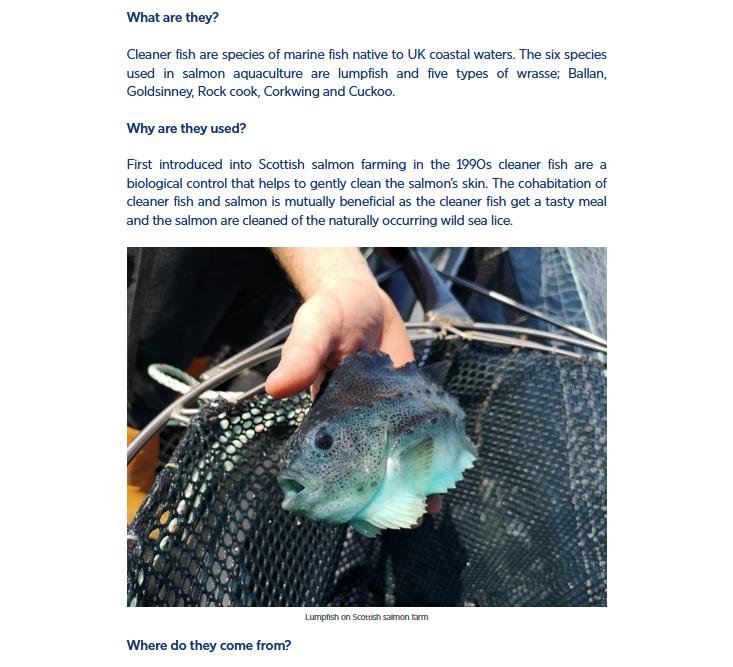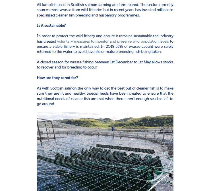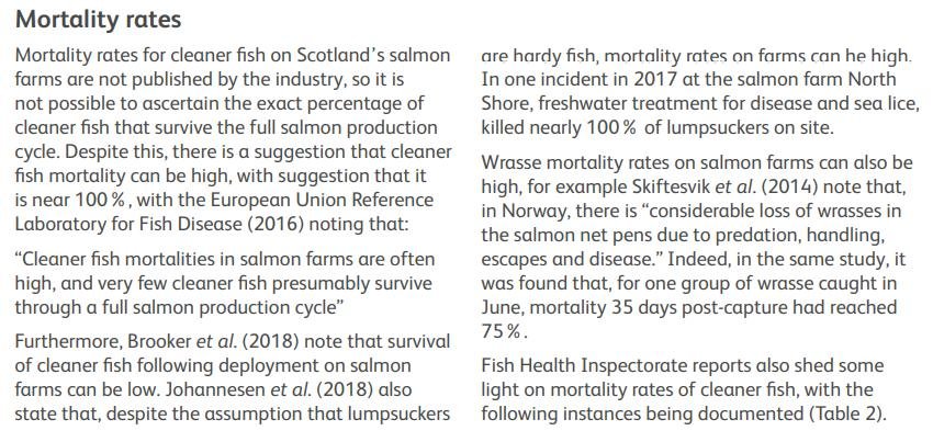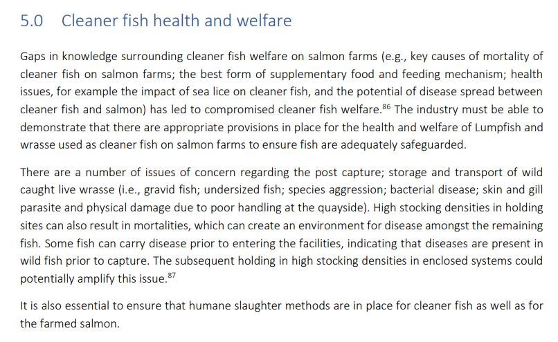 In February 2021, the Marine Conservation Society published a report the use of cleaner fish in salmon farming: