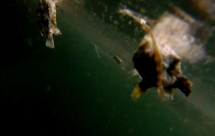 Here's video footage of lumpfish feeding on pellets (not lice-infested salmon) inside Mowi's 'Bay of the Dead Heads' salmon farm in July 2021 (the video footage is upside down but you get the picture!):