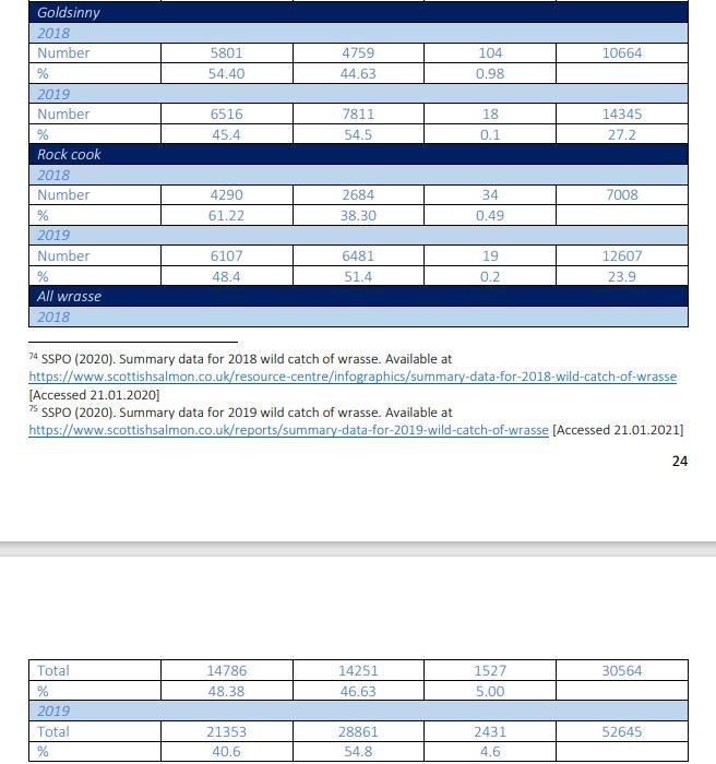 Data on the harvesting of wild wrasse for use on salmon farms in Scotland is not publicly available – except data disclosed in January 2022 detailing over 280,000 wrasse imported from JJ ONeill in Northern Ireland to Mowi Scotland and Kames Fish Farming.   Further data may be collected by the Scottish Government via new measures introduced in 2020 but it is not readily available (Salmon Scotland has published some information on cleaner fish – including catch data for wild wrasse in 2018 and 2019 but there does not seem to be any published data for 2020 or 2021).