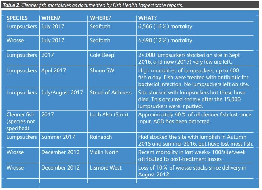 The letter to Scottish Ministers cites 'Case Information' reported by the Scottish Government's Fish Health Inspectorate during 2021 – including 2.2 million cleaner fish (wrasse and lumpfish) stocked on salmon farms with 333,519 reported morts (both wrasse and lumpfish):
