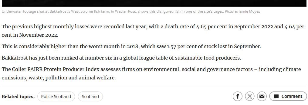 "Maimed fish captured on film at salmon farm in west Highlands of Scotland, sparking fears over animal welfare – Gruesome underwater footage of disfigured salmon" @Ilonaamos @TheScotsman @Folketrygdfond @rspcaassured @APHAgovuk @ScotGovMarine @ASC_aqua https://t.co/jyvNyT97fJ