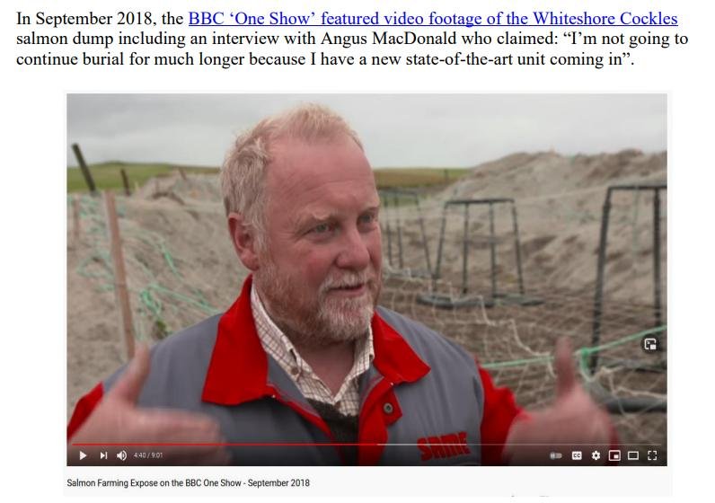 Remember that the owner of Whiteshore Cockles claimed on the BBC One Show in September 2018 that dumping of diseased salmon would not continue for "much longer".