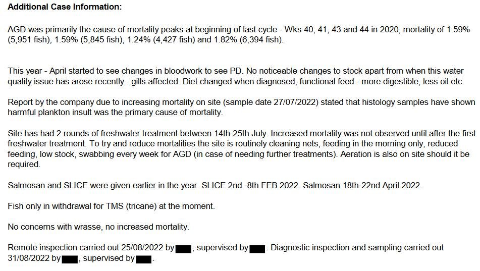 Here's a Fish Health Inspectorate report relating to an inspection in August 2022 of Loch Duart's RSPCA Assured salmon farm in Loch Laxford – published by the Scottish Government on 15 November 2022: