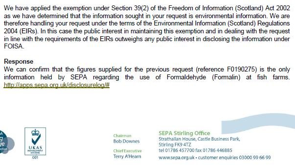 SEPA FOI reply on Formaldehyde 19 July 2019 #2