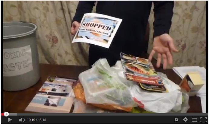 Watch a video showing examples of fishy salmon labelling in supermarkets in England – online here