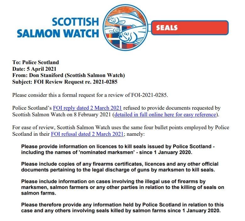 This new FOI request requests the "Wildlife Crime intelligence held by the Scottish Government" since 1st January 2018 in relation to seals killed by salmon farms. Scottish Salmon Watch has also filed a FOI request with Police Scotland.
