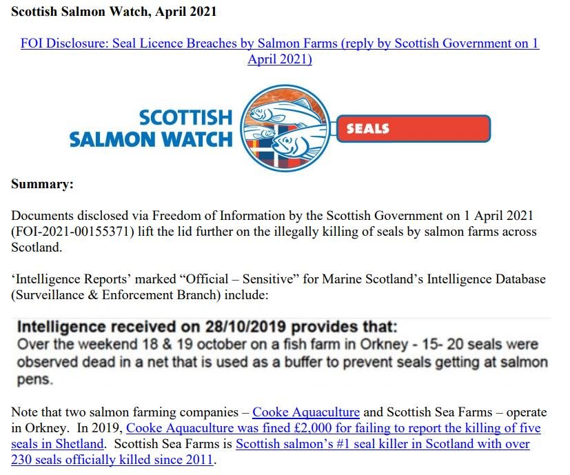 Subject: FOI re. illegal killing of seals & breaches of Seal Licences by salmon farms since 1 January 2018