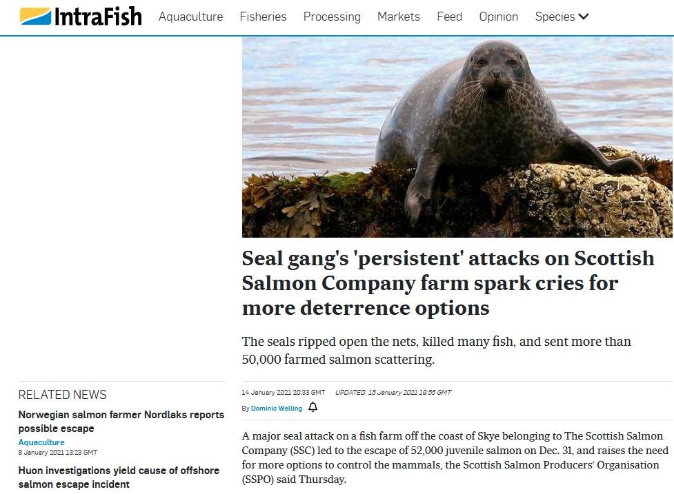 - The Ferret: "Salmon companies rapped for breaking rules on shooting seals"