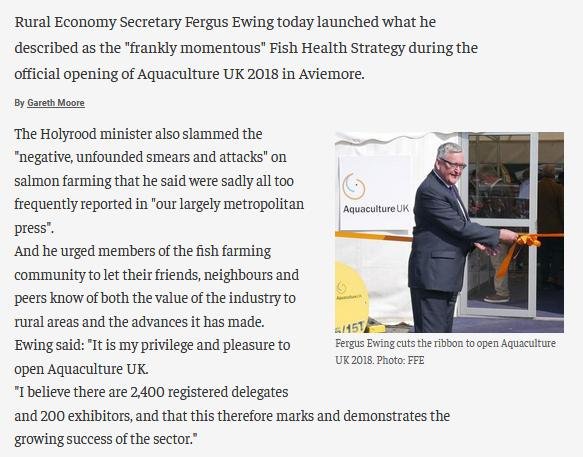Fergus Ewing, the Cabinet Secretary for Rural Economy & Connectivity, described the report as "frankly momentous" at the launch during the official opening of Aquaculture UK 2018 in Aviemore.