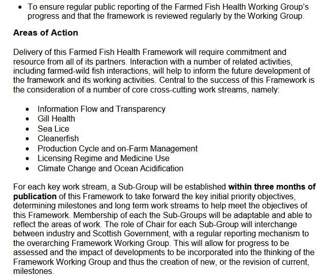 'Scotland’s 10 Year Farmed Fish Health Framework' includes: