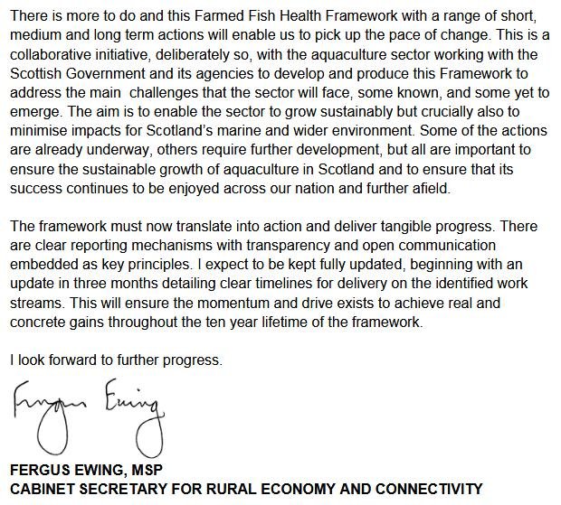 'Scotland’s 10 Year Farmed Fish Health Framework' was published yesterday (23 May 2018) by the Scottish Government following collaboration with Scottish Sea Farms, Marine Harvest, the Scottish Salmon Producers Organisation, the Scottish Environment Protection Agency, Scottish Natural Heritage, the Fish Veterinary Society and the Scottish Aquaculture Innovation Centre.