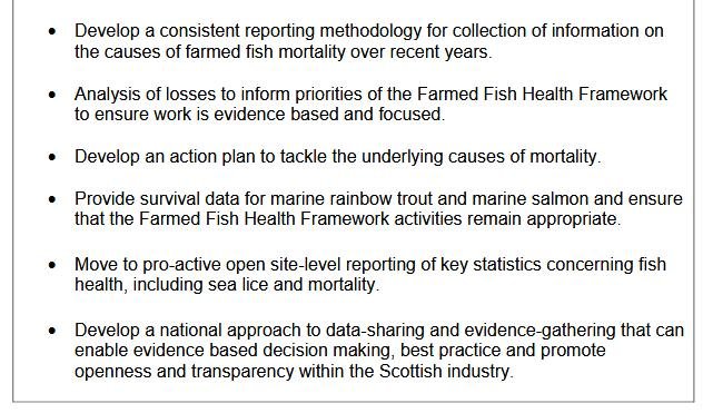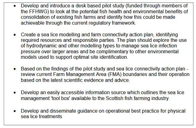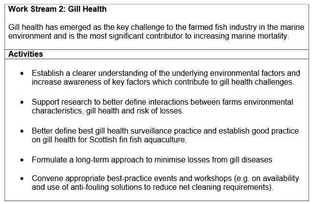 Priorities for action identified by 'Scotland’s 10 Year Farmed Fish Health Framework' included: