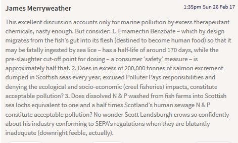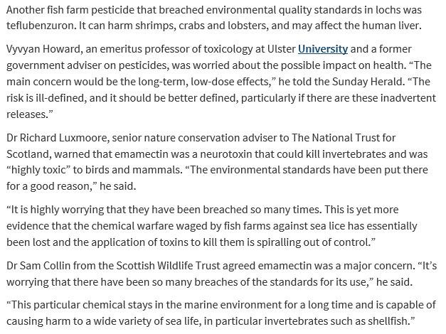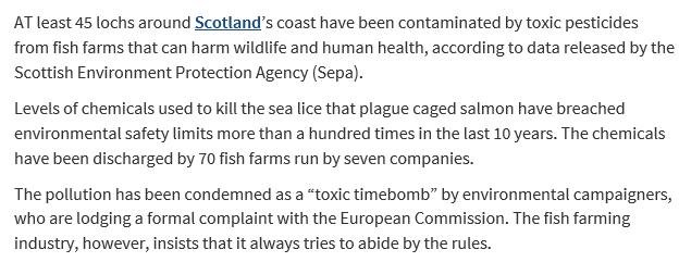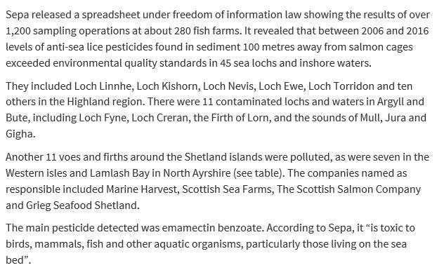 The article was also reported by The Ferret (28 February 2017) via "Mapped: the 45 lochs polluted by fish farm pesticides"