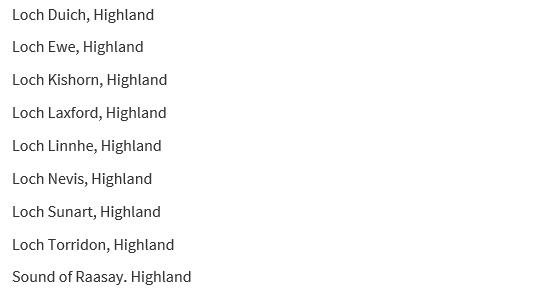 Here's the table of contaminated lochs: