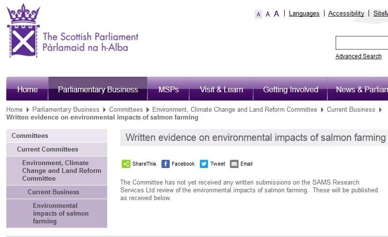 Review of the Environmental Impacts of Scottish Salmon Farming – call for written evidence (deadline of 8 February)