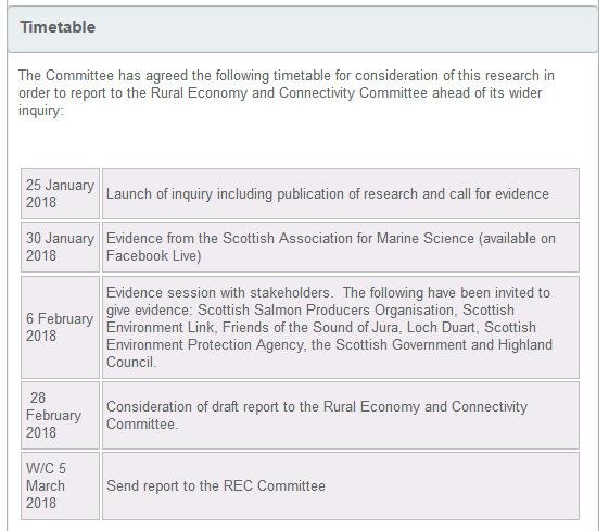 Here's the timetable of the Environment, Climate Change and Land Reform (ECCLR) Committee – including evidence presented later today (30 January 2018) by the Scottish Association of Marine Science:
