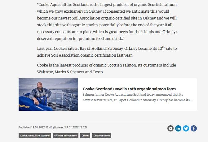 Why does the @SoilAssociation certify salmon farms as 'organic'? @SoilAssocScot @CookeScotland @cookeseafood pic.twitter.com/7FTcnt01zG— Don Staniford (@TheGAAIA) August 24, 2022