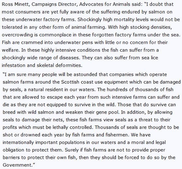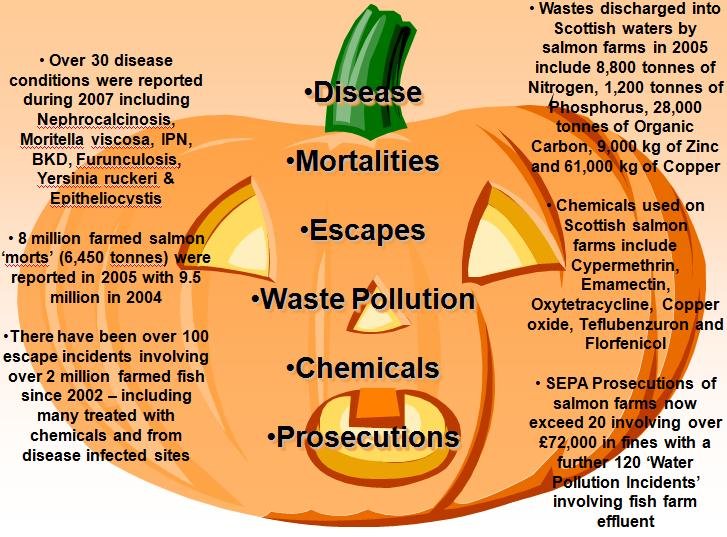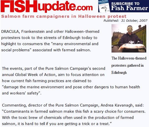 A press release issued by the Pure Salmon Campaign on Halloween 2007 included: