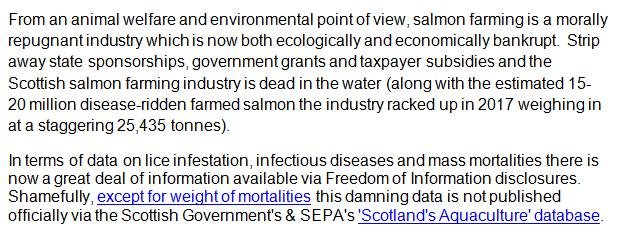 Download in full via Hard Evidence: Dossier of Data on Lice Diseases & Mortalities at Scottish Salmon Farms (13 March 2018)