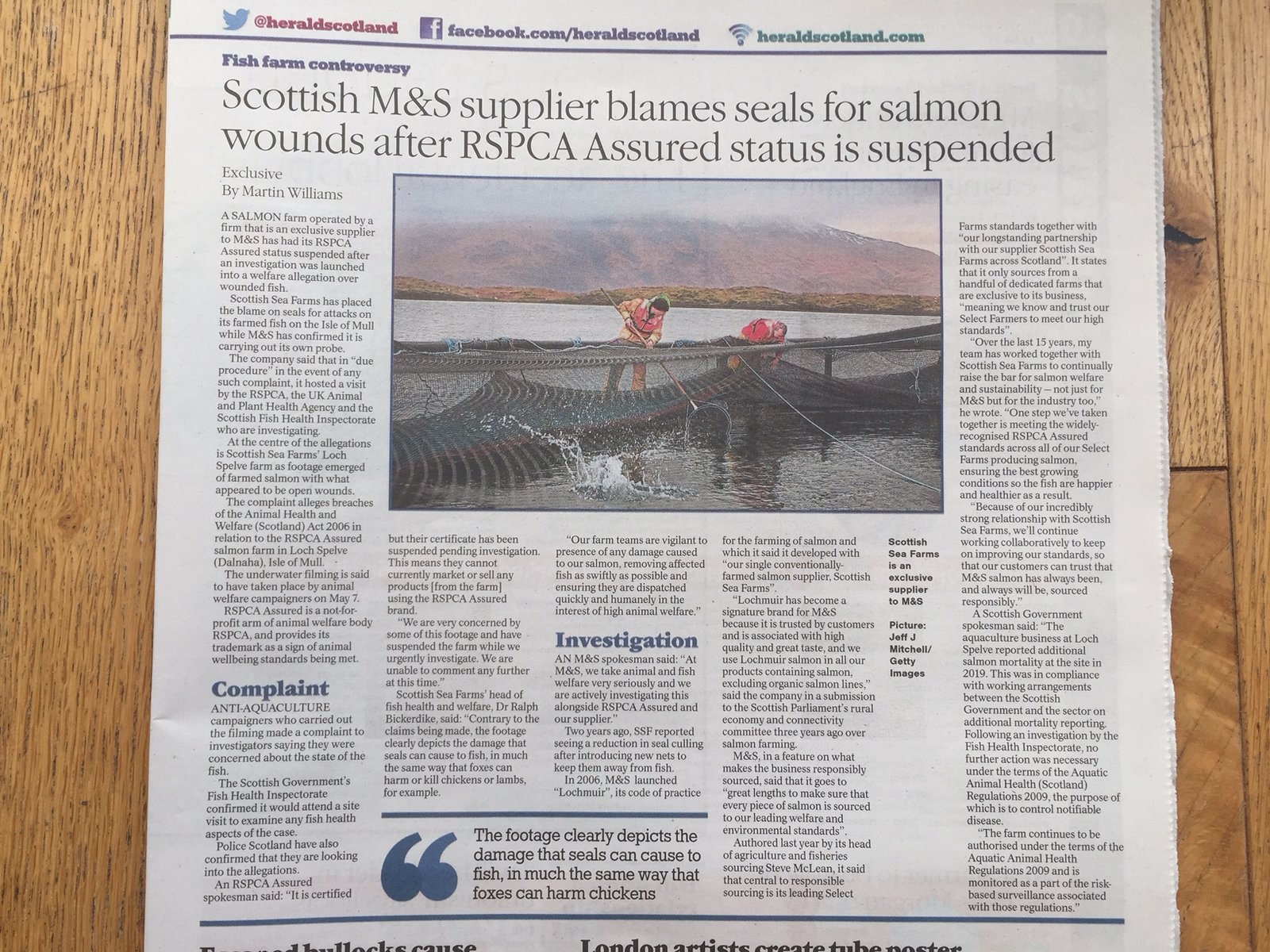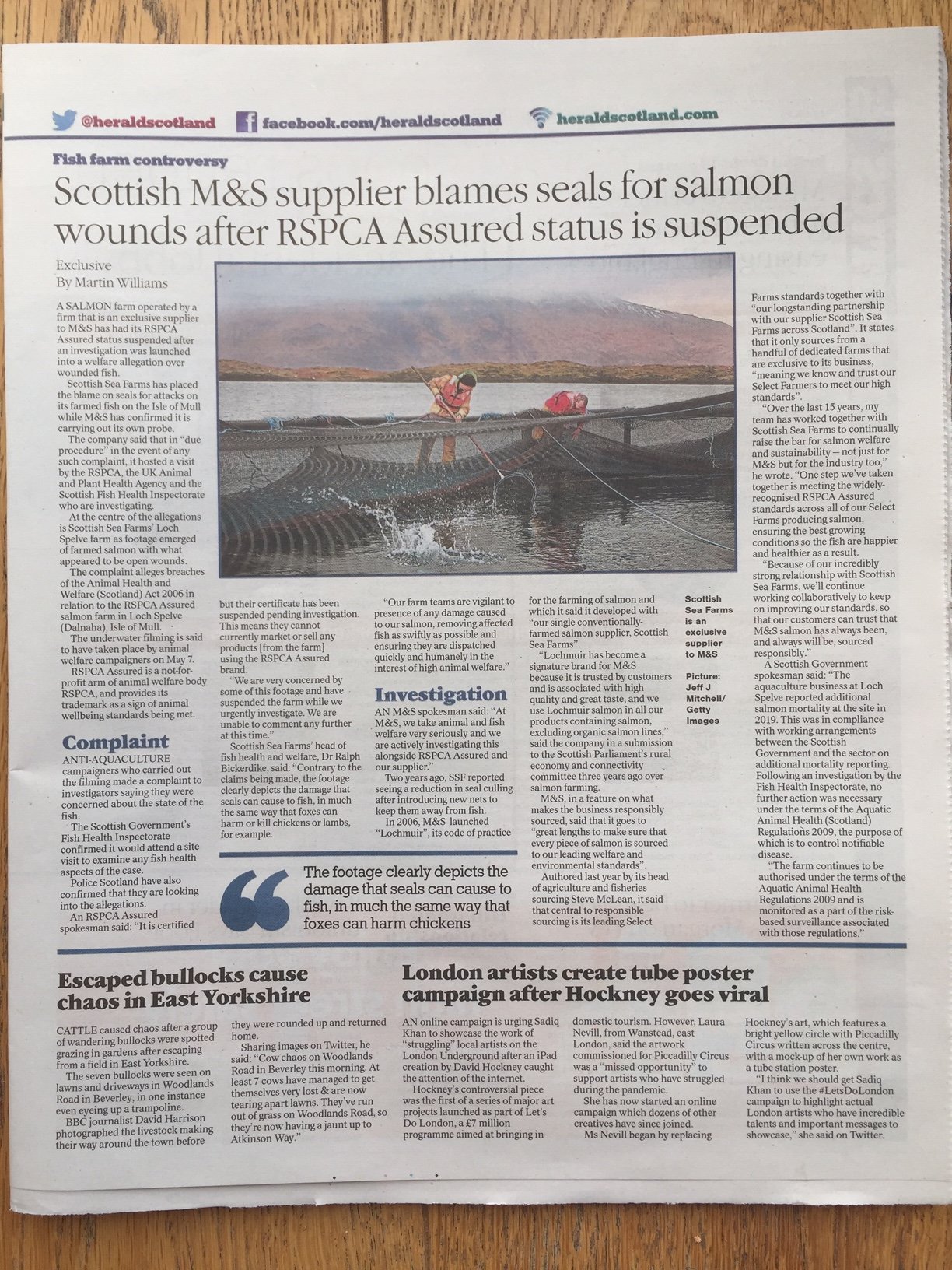 Herald On Sunday: "Scottish M&S supplier blames seals for salmon wounds as RSPCA Assured status is suspended" @Martin1Williams @heraldscotland @rspcaassured @scotseafarms @SSPCA_Kirsteen @SSPCA_Mike @LeroySeafood @marksandspencer @LucyWeather @XantheClay https://t.co/rXwpLUsB8G pic.twitter.com/LMHhUPlKuM