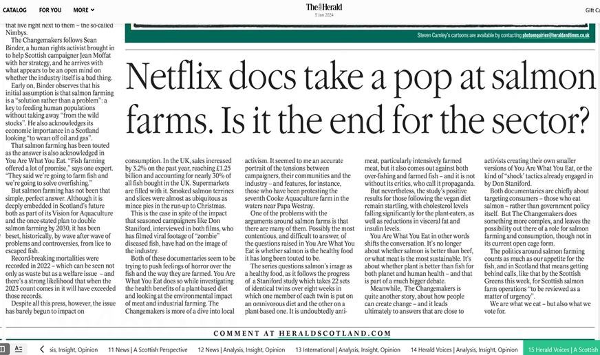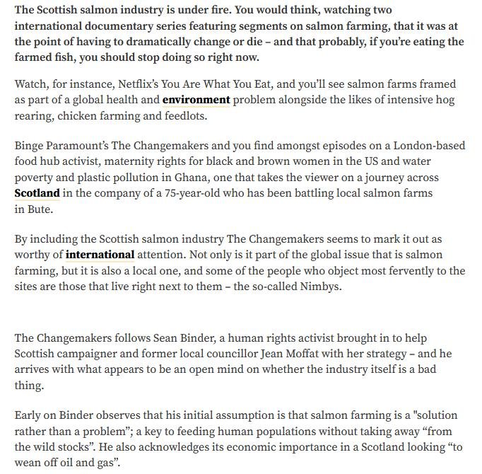Vicky Allan @heraldscotland: "The Scottish salmon industry is under fire. You would think, watching two international documentary series featuring segments on salmon farming, that it was at the point of having to dramatically change or die" @netflix https://t.co/ZmmUNpQonm pic.twitter.com/ujns4TJ7yb