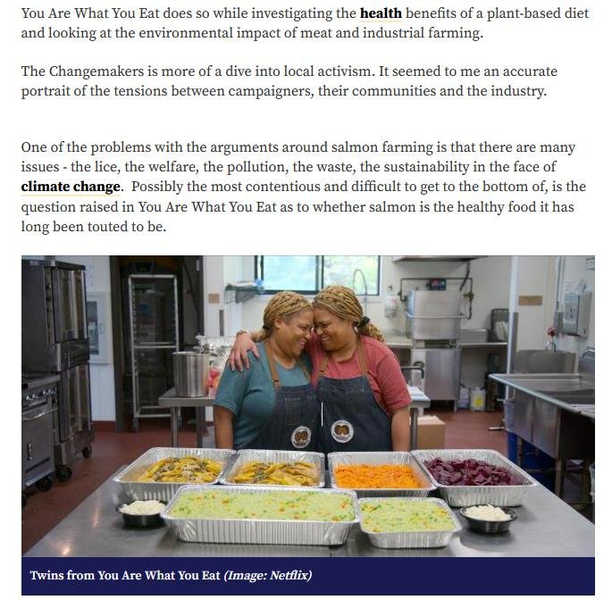 What was the most surprising fact on salmon farming in the Netflix doc out today "You are what you eat"?