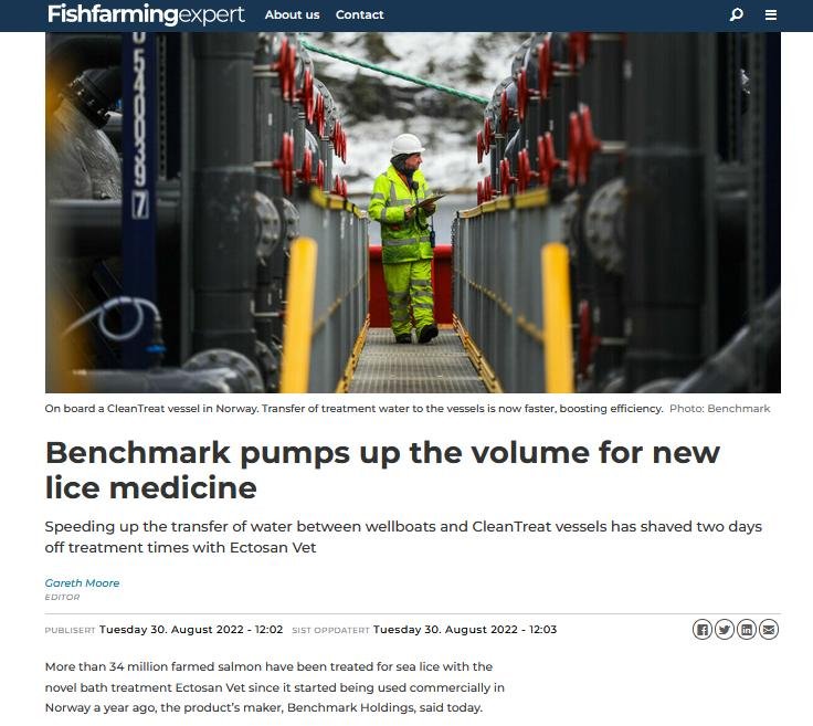 - "EU deals potential setback to Benchmark’s rollout of new sea lice treatment"