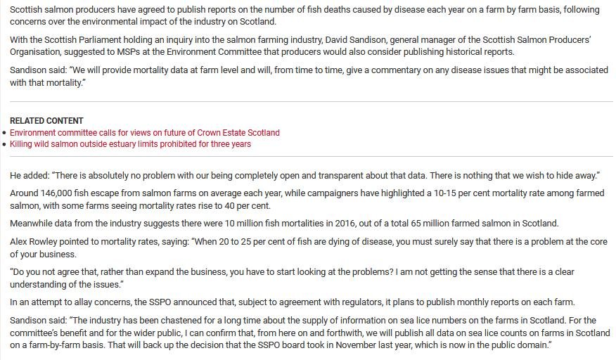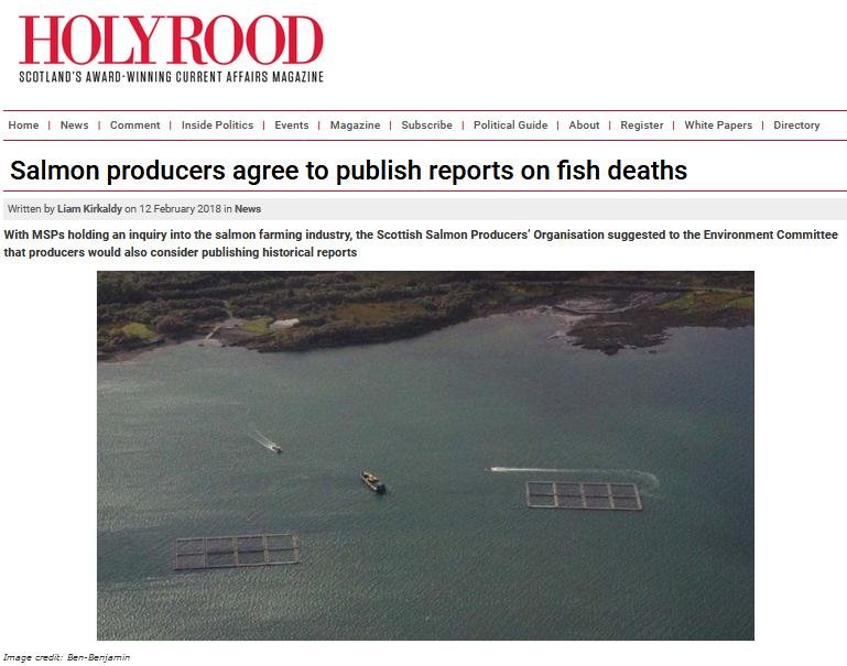 Holyrood: “Salmon producers agree to publish reports on fish deaths”